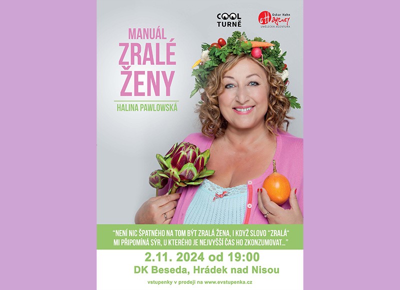 Chcete být obletovaná, krásná, věčně mladá? Poslechněte si milostné příběhy, které vás inspirují, zasmějte se erotickým zkušenostem ostatních, samy se zeptejte na všechno, co vás zajímá a nechte si poradit! A hlavně se přijďte zasmát! Manuál zralé ženy je určen ženám od dvanácti do sta let, je ale i pro muže, protože právě díky manuálu budou lépe rozumět svým partnerkám a možná i sami sobě.<vstupné: 450="" kč="">